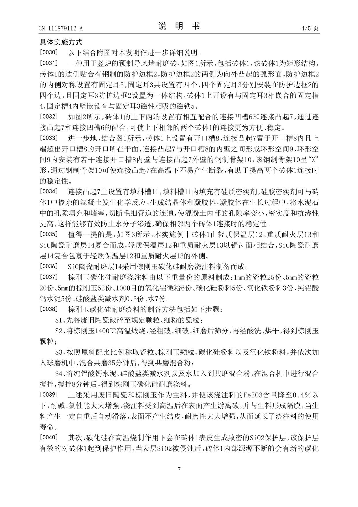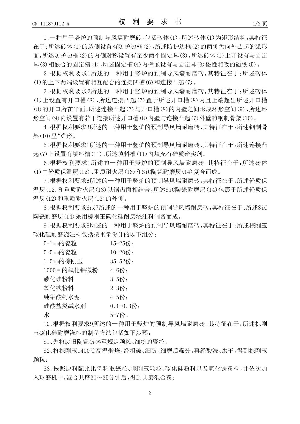 發(fā)明專利——一種用于豎爐的預(yù)制導(dǎo)風(fēng)墻耐磨磚