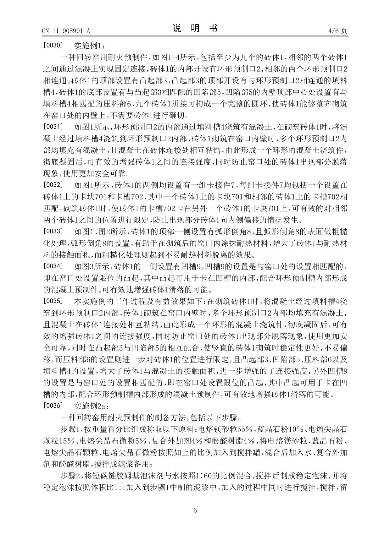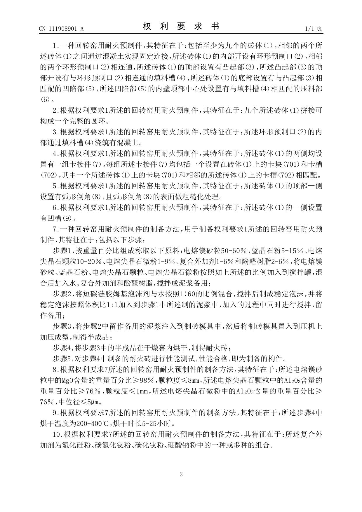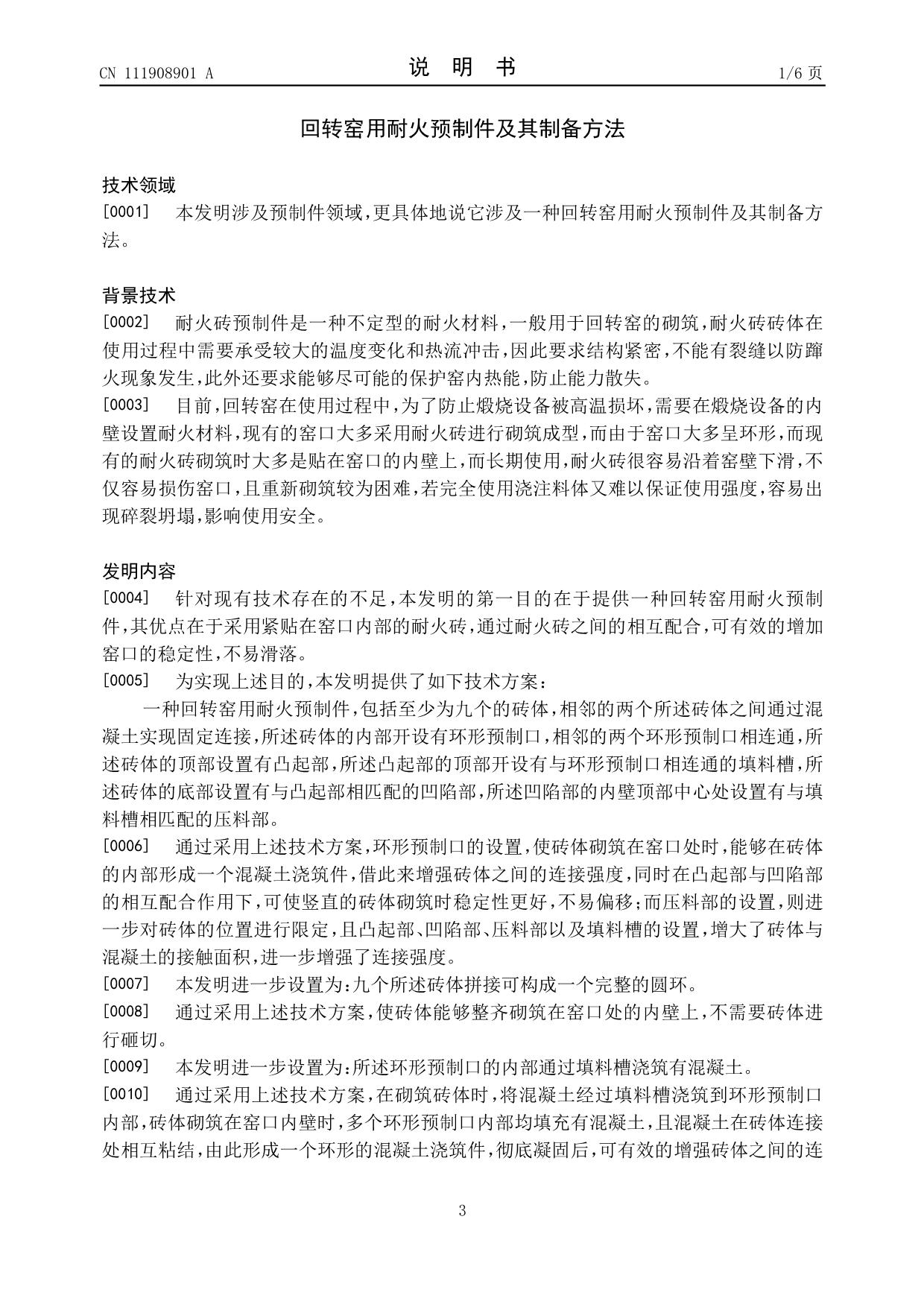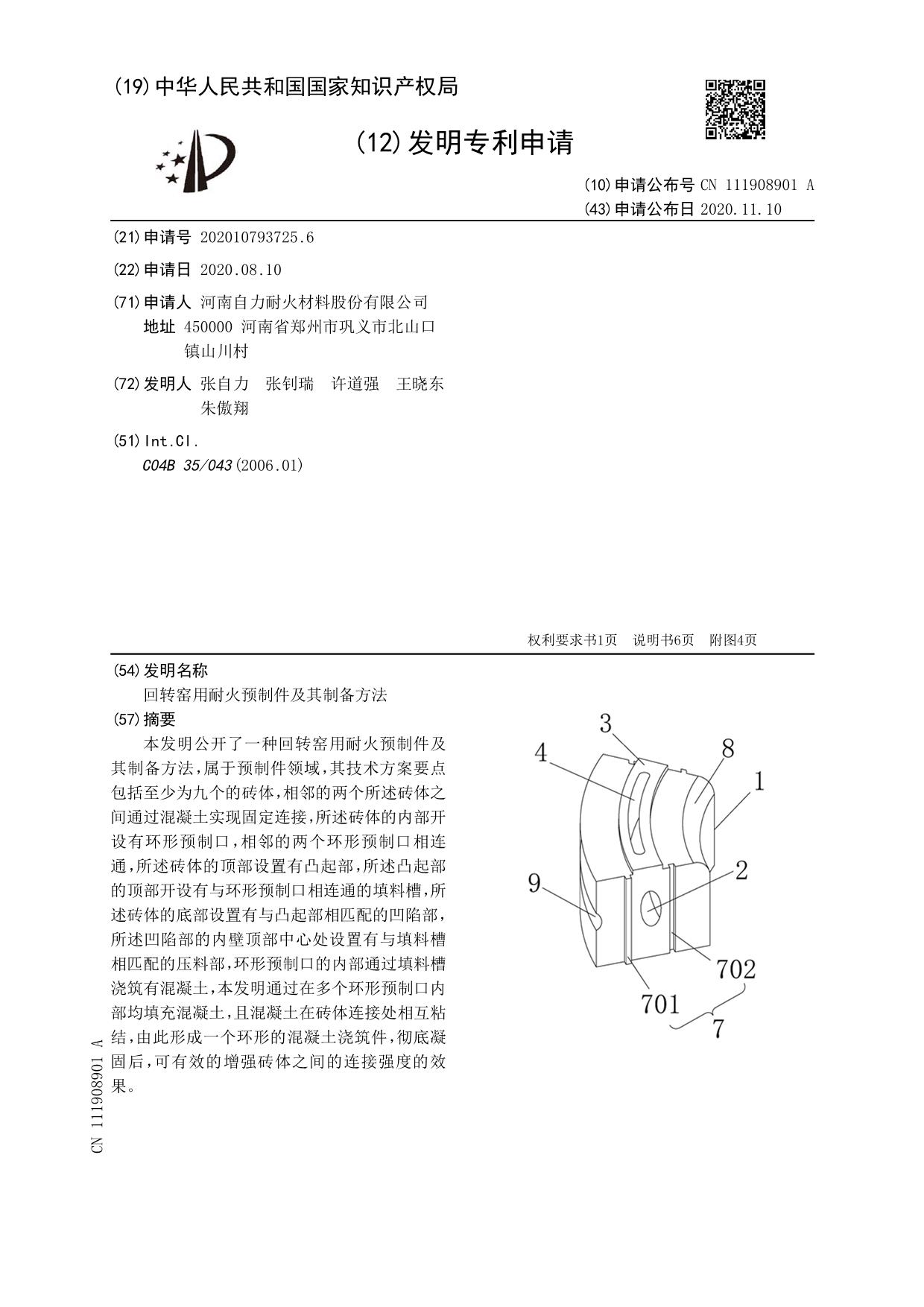 發(fā)明專(zhuān)利——回轉(zhuǎn)窯用耐火預(yù)制件及其制備方法